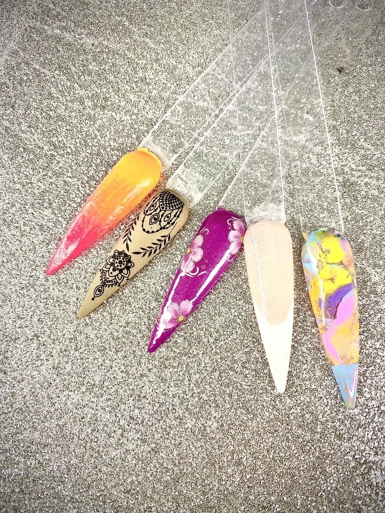 Includes simple designs such as stickers, ombre, marbling or french tips